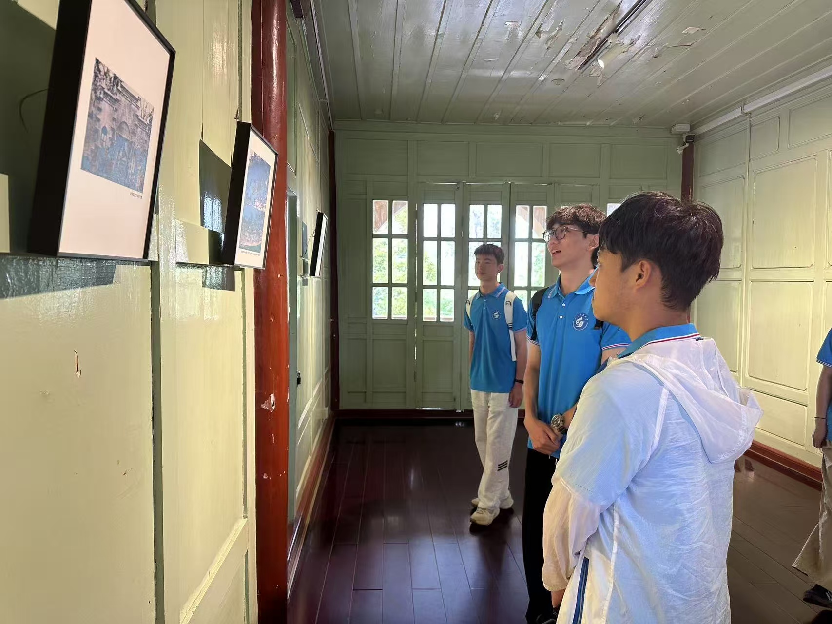 “七彩云桥”实践队还前往云南民族博物馆,开展“以建筑测绘解码民族基因”的实践活动,按照自身兴趣参观博物馆,感受中国完整的民族服饰谱系,体悟纳西族东巴经、傣族贝叶经等世界级文字遗产,聆听民族特色乐器的奇妙音色,欣赏各民族独特的手工艺品和云南特有的瓦猫形象。参观结束前,实践队齐聚象征民族团结的“石榴籽”主题大厅,面向鲜红的石榴籽雕塑,共同表达了“像石榴籽一样紧紧抱在一起”的坚定信念和对民族复兴的殷切期盼。