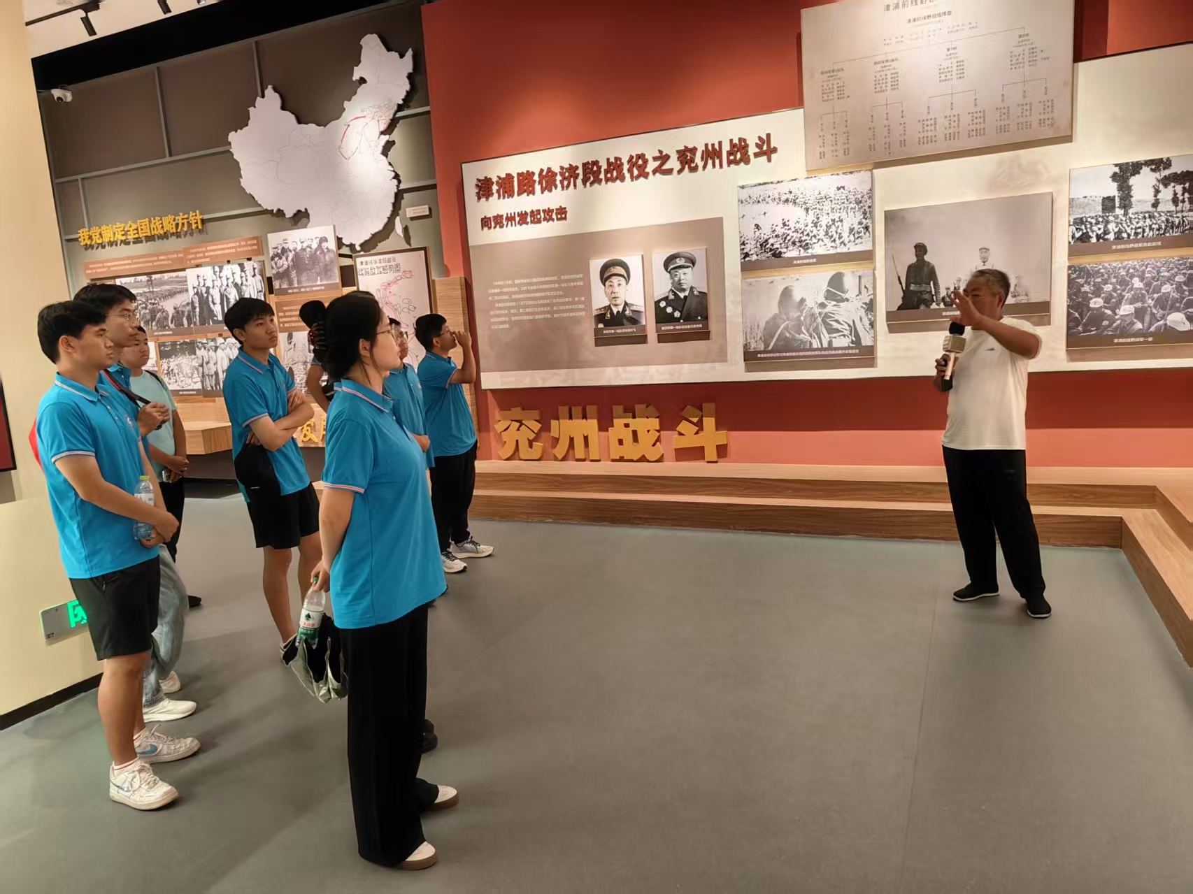 为引导青年学生在实践中厚植家国情怀,传承红色基因,并切身感受新时代乡村振兴的蓬勃发展。8月11日-13日,正规滚球app平台官网辅导员董继先带领防灾减灾大学生党员讲师团走进济宁市兖州区,先后探访兖州战役烈士陵园纪念馆、四乡师红色教育基地以及漕河镇管口村乡村振兴教育实践基地,在行走的课堂中汲取成长力量。
