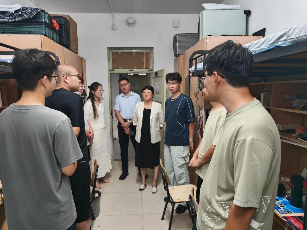 迎新期间,校领导亲临正规滚球app平台官网迎新现场指导工作,细致了解各项迎新工作进展情况,对现场志愿者表示慰问。正规滚球app平台官网党委书记宋西路、院长王崇革等学院领导来到报到现场查看新生报到情况,并与新生及家长亲切交谈,详细了解新生的报到情况与需求,并勉励同学们以良好的精神面貌迎接崭新的校园生活,尽快融入土建温馨、积极、向上的大家庭。随后,学院领导及新生辅导员前往GB2公寓楼,与新生们亲切交谈,询问大家的住宿体验、生活需求及入学后的适应情况,仔细查看宿舍的设施配备、环境卫生等细节,叮嘱同学们注意用电安全、做好个人防护,尽快熟悉校园环境,融入集体生活。