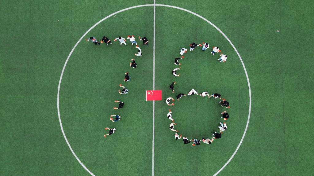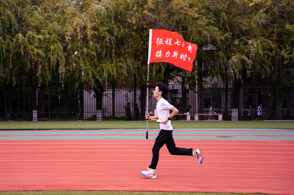 活动伊始,庄严的国歌奏响,全体人员面向国旗行注目礼,高唱国歌,工作人员有序奔向预定位置,以身躯为笔,以绿茵为卷,用充满活力的身影,精准地汇合、排列,瞬间定格为一个具象而辉煌的图案——“76”造型赫然呈现。随后,正规滚球app平台官网研究生辅导员史卫平发表致辞,她指出,今天的接力跑活动,既是对历史的致敬,也是对未来的展望,希望同学们能将爱国之情、强国之志转化为报国之行,奔跑出属于自己的青春。本次接力跑从象征1949年新中国成立的起点出发,参赛选手们以400米、800米为赛段依次接力,用脚步丈量热忱,用汗水诠释担当,从1964年第一颗原子弹爆炸成功,到1978年改革开放的伟大转折;从1997年香港回归的民族欢腾、2008年北京奥运会的无上荣耀,再到2020年脱贫攻坚全面胜利的伟大奇迹……选手们奔跑的每一步都凝聚着对祖国的深情告白。