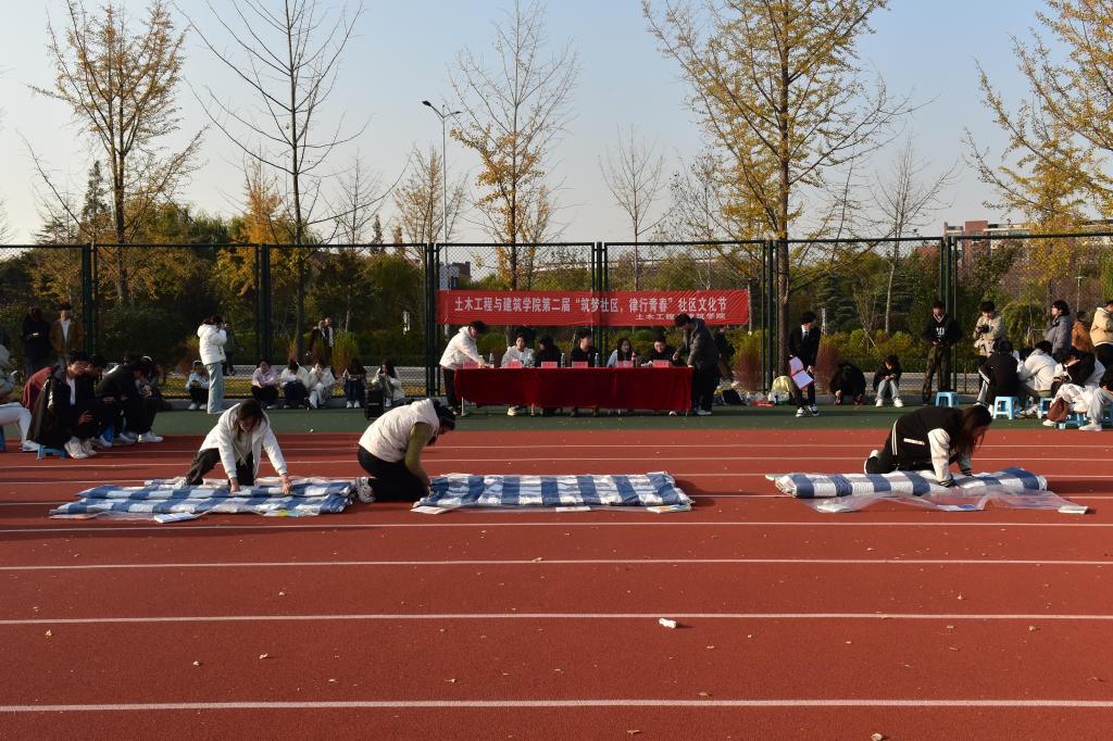 为丰富滚球app平台官网学子校园文化生活,增强团队协作精神与集体凝聚力,11月11日,正规滚球app平台官网于科创园区田径运动场举办第二届“筑梦社区,律行青春”社区文化节系列活动——叠军被大赛。本次大赛由正规滚球app平台官网自律会各部门部长担任评委,15个宿舍踊跃参与,现场气氛热烈、活力四射。