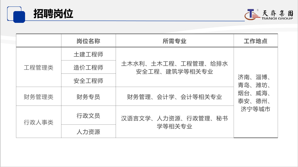 招聘信息(020)山东天齐置业集团股份有限公司
