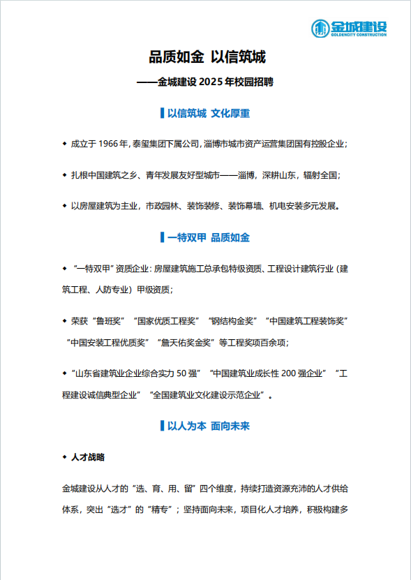 招聘信息(040)金城建设有限公司