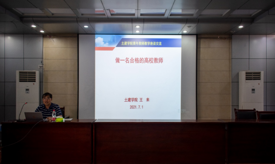 王来教授以如何做一名合格的高校教师为主题,分别从“不忘初心、牢记使命”“改进教学工作,敬业爱岗”“用心教学,用心上好课”“培养创新能力”“教学科研相互促进”等五个方面展开讲述,并针对教育教学中常遇到的问题和与会青年教师进行了热烈的交流和讨论。
