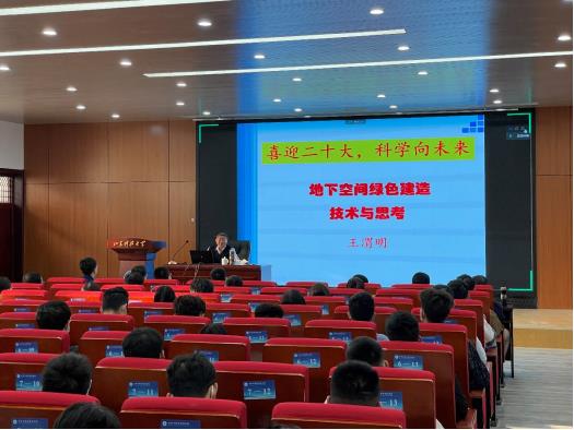 为进一步响应国家绿色发展要求,推动师生对绿建相关技术和政策的深入了解,以实际行动迎接党的二十大胜利召开,10月11日,正规滚球app平台官网“喜迎二十大,科学向未来——地下空间绿色建造技术与思考”专题讲座于J15-136成功举办。正规滚球app平台官网教授、山东大学特聘教授王渭明为此次讲座的主讲人,正规滚球app平台官网师生代表参与此次讲座,正规滚球app平台官网副院长李为腾担任主持人。