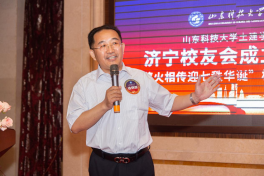 孙鹤汀代表学校对正规滚球app平台官网济宁校友会的成立表示热烈祝贺,他回顾了学校与校友工作的发展历史,与校友们分享了学校近年来取得的成绩和“一家人一家亲,守望相助,共荣共进”的校友工作理念,他强调,校友会是联系学校和校友的情感纽带和交流平台,希望校友会建成加强联系,促进交流,增进友情,共享互助,促进校友事业发展,襄助母校事业发展的平台。他强调,母校70华诞是37万海内外校友共同的节日,校庆旗传递是校庆系列活动之一,校庆旗在山东省内各校友会及全球范围内各校友会进行接力传递。希望广大校友积极参与校庆活动,更好传承学校文化,凝聚校友力量,扩大社会影响,并诚邀广大校友回母校同襄盛会,畅叙友情。
