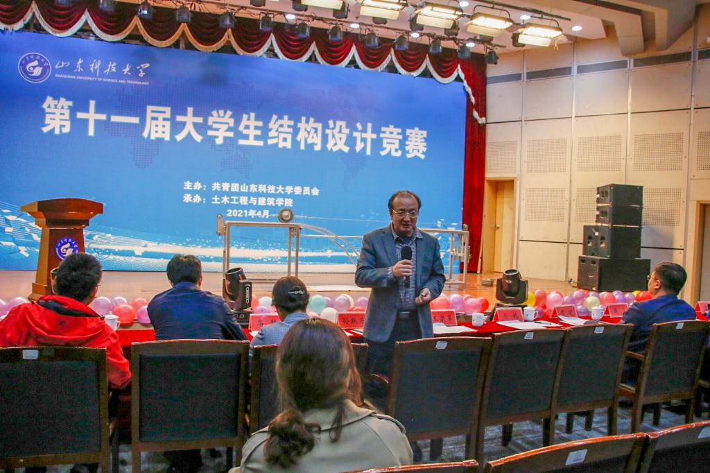 比赛结束后,孙跃东教授对本次比赛作了总结发言。他强调,结构设计竞赛一直以来深受学校和学院领导的高度重视,也是土木行业最有含金量的比赛之一。学校土木工程专业是国家级特色专业,又刚刚获批国家级一流本科专业建设点,希望同学们趁此东风,通过以赛促学、以赛促创,进一步夯实力学与数学等基础学科知识,理论联系实际,敢于创新,学以致用。
