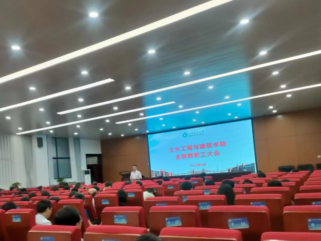院长王崇革向全院教职工传达了学校总结部署工作会议精神,对学院2022年上半年工作和暑期工作进行了总结分析,肯定了全院教职工的辛勤付出和取得的阶段性成效,并对下半年工作重点进行了安排部署。在取得一定成绩的同时,学院在诸多方面还存在短板,王崇革希望全院教职工对标工作要求,增强工作活力,明确努力方向,继续以高昂的精神状态做好学院各项工作,推动学院发展迈向新台阶。