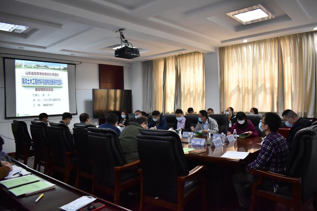 为深入贯彻落实习近平总书记海洋强国战略思想及山东海洋强省建设行动方案,4月14日,山东省高等学校青年创新团队“海洋土木工程材料与结构创新研究团队”建设规划论证会在正规滚球app平台官网召开。人才工作办公室副主任郭洪波、科技处副处长孙开师、正规滚球app平台官网院长王崇革、副院长李朋、都浩及正规滚球app平台官网海洋土木工程创新团队成员出席会议,院长王崇革主持论证会。