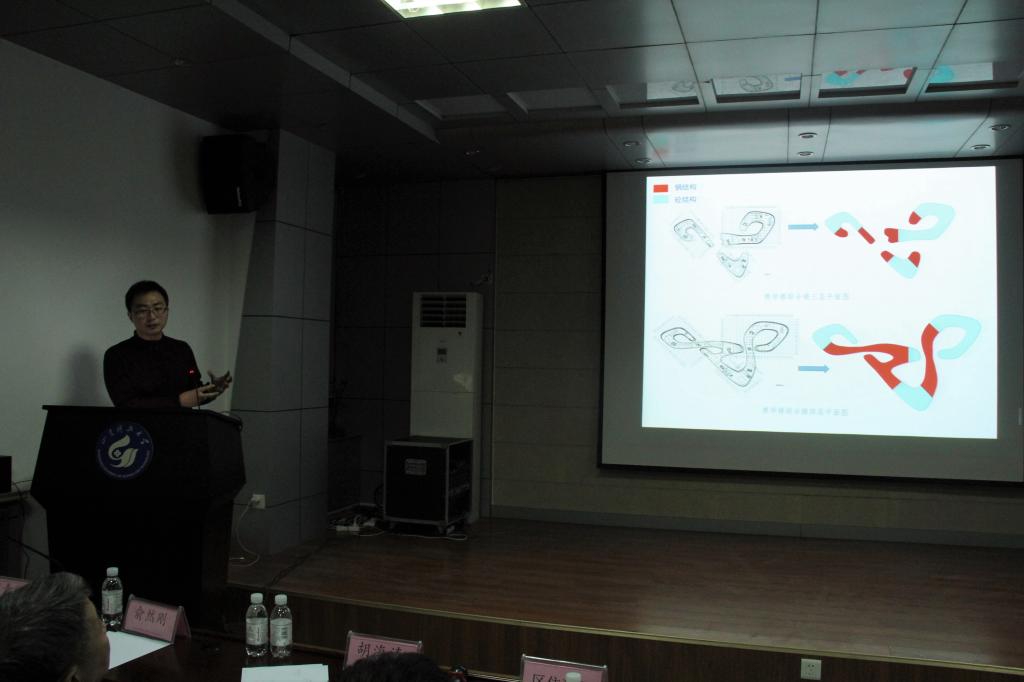 此次评选内容为抗震防灾、幕墙、轻钢、木结构等建筑结构专项,共有13个单位参评。首先,侯万里和付强致辞。随后,各参评单位以PPT的形式进行了汇报,提出了项目的整体或局部亮点、特点,着重阐述了自己设计方案的设计思路、创新创意点;汇报结束后,专家评委根据汇报内容进行提问,参选人员进行现场答辩;专家评委以及70名大众评委根据参选人员现场表达和答辩情况给各参评单位评分并当场公布评选结果。