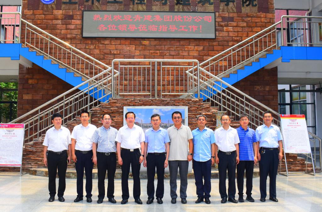 7月5日上午,青建集团股份公司董事长、总裁吴书义,总承包事业部董事长、CEO李显金,总承包事业部联席总裁朱茂恒,总承包事业部执行总裁姚林一行到正规滚球app平台官网交流访问,校党委书记罗公利,正规滚球app平台官网党委副书记(主持工作)宋西路、院长王崇革、副院长张宪堂陪同交流。