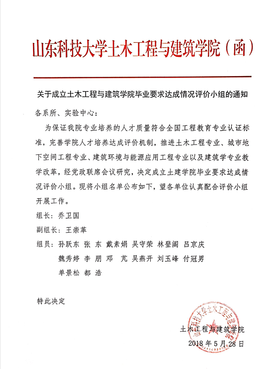 关于成立正规滚球app平台官网毕业要求达成情况评价小组的通知