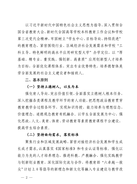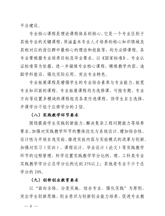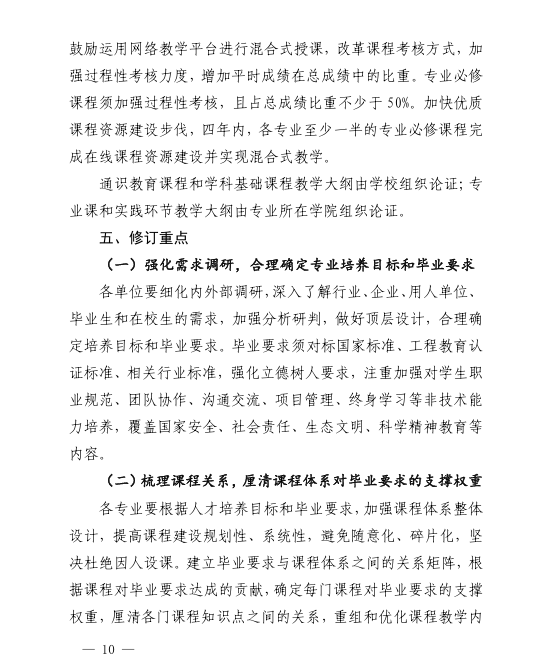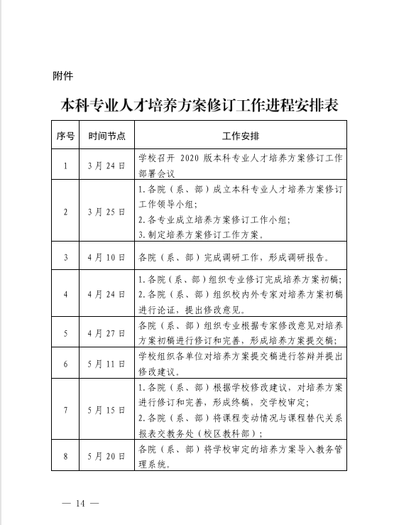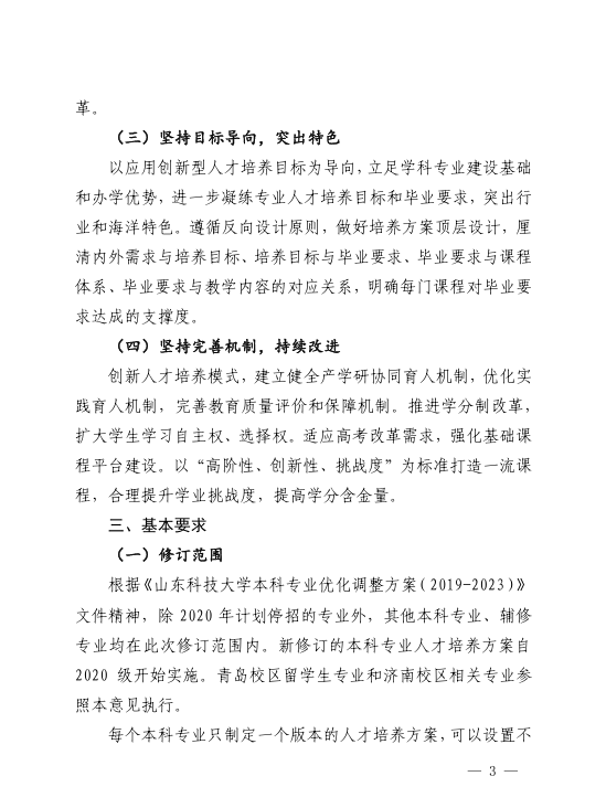 关于修订2020版本科专业人才培养方案的指导意见